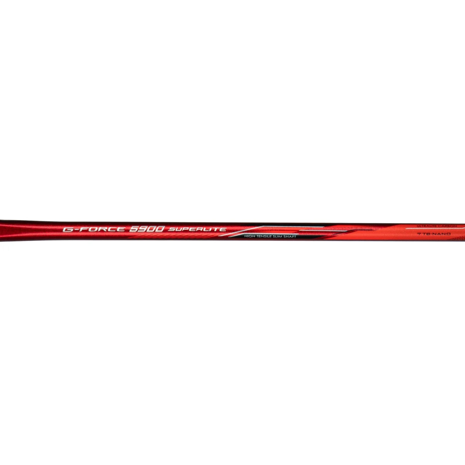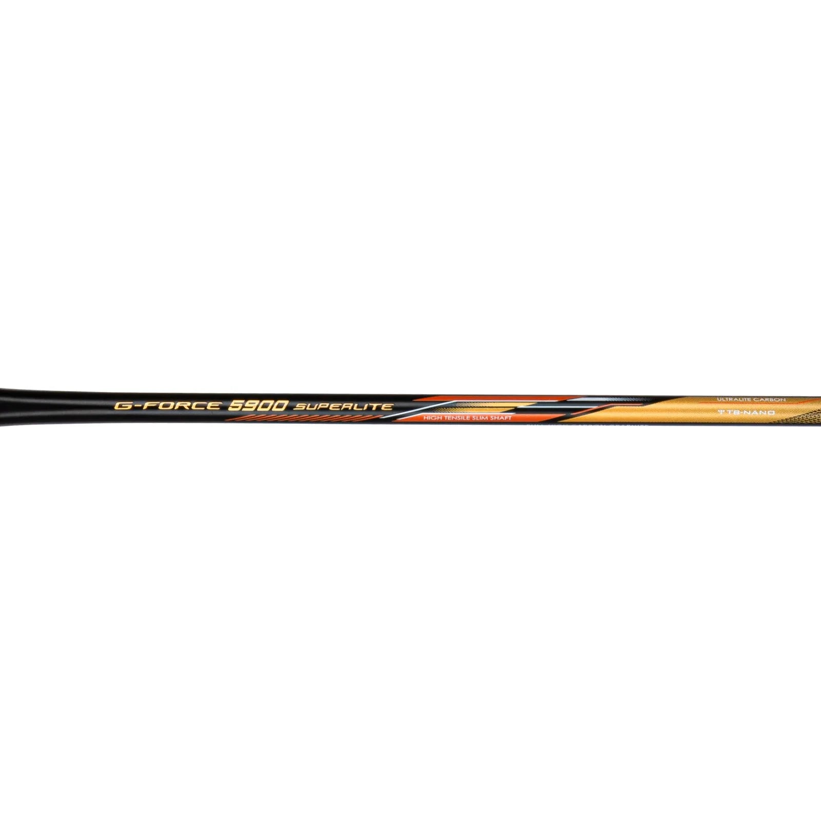 Take your game to the next level with the Li-Ning G Force 5900 Superlite. This head-heavy racket is specially engineered for aggressive attacking shots. The flexible shaft provides added power and control for your smashes while the slim TB Nano shaft constructed from ultralite carbon graphite keeps the weight low at just 79g. String it up with tensions up to 30 lbs using the G6 grip. With its optimized head-heavy balance and flexible shaft, the G Force 5900 Superlite gives you the power and maneuverability you need to dominate the court.