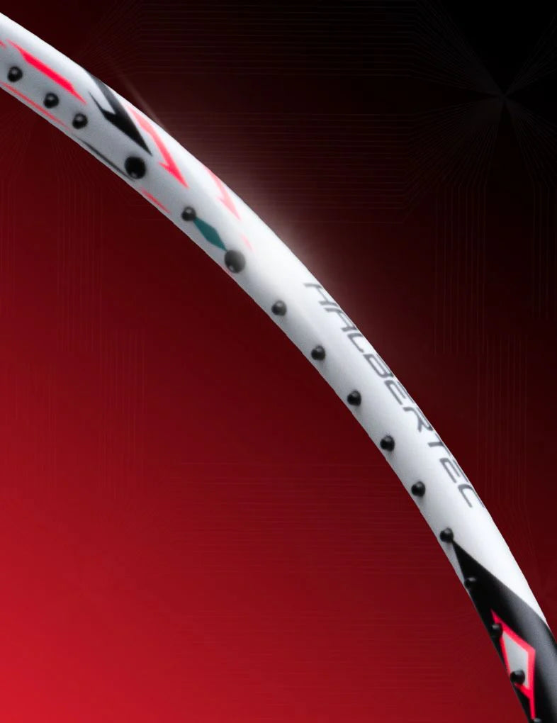 The Halbertec 4000 features a slim shaft for super-fast swings and enhanced shot accuracy. High-tension stringing boosts shuttle acceleration, while a stabilized layout ensures controlled, consistent shots. HDF shock absorption minimizes impact, and TB Nano technology delivers lightweight durability.