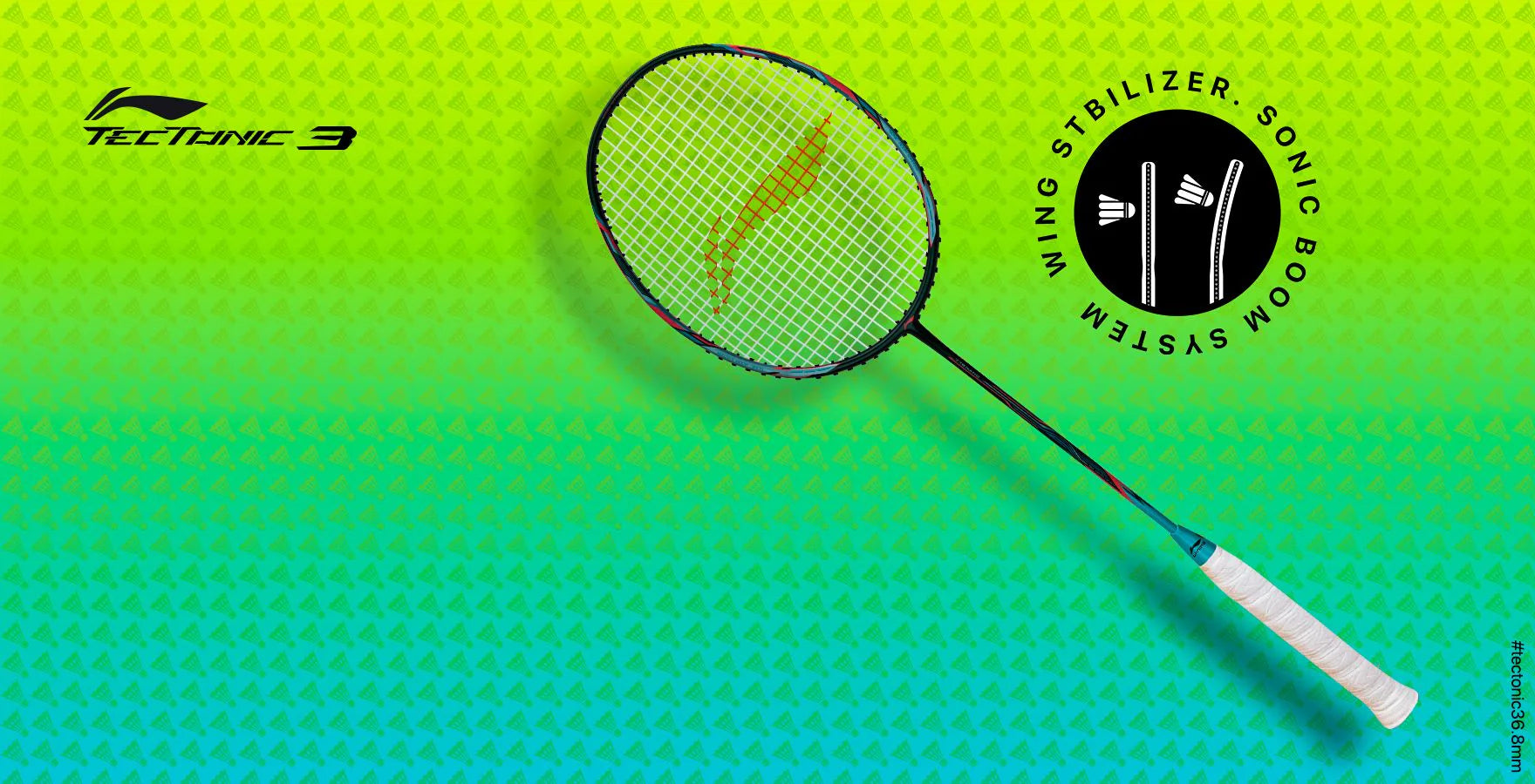 Experience the power to embrace limitlessness with Li-Ning’s new Tectonic 3. Its unique flexible frame structure absorbs potential rebound energy, doubling the acceleration power of the racket in turn. With 'Wing stabilizer' Technology and TB Nano carbon-fibre frame, the racket's overall stability is improved by suppressing turbulence and improving striking precision.